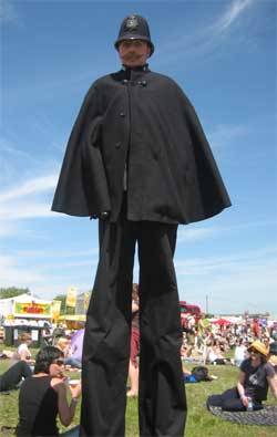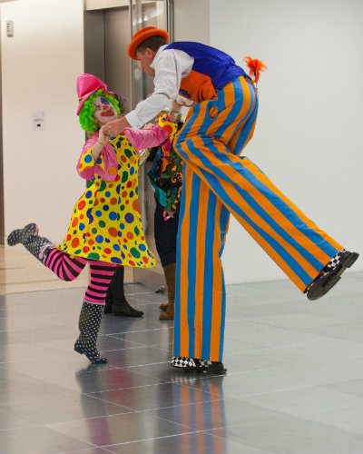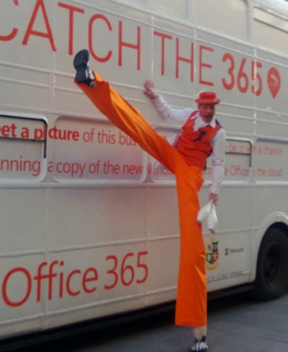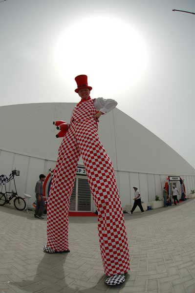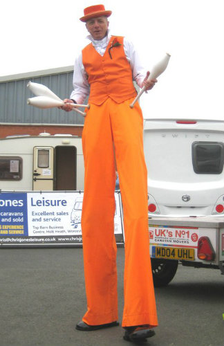 I have performed as a stilt walker and juggling stilt walker for an incredible variety of events including parades, festivals, shopping centres, garden parties, launches, race courses for horses, racing cars and motorbikes, town centres, fetes, parties, fields, beaches and even the desert! Stilt walking is a brilliant medium for meeting and greeting guests, or for mix and mingle entertainment as it makes me visible and eye catching over a very large area, it works especially well when you want your entertainment in a walkabout style and with the addition of my stilt bicycle I am able to literally take the entertainment to the entire area regardless of size!