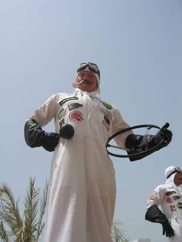 I can also design and create a bespoke costume to suit a particular engagement, for example I designed and created costumes based on the Bahrain national flag for the 1st race of the 2006 Formula 1 season race held in Bahrain, and again themed for Formula 1 Bahrain in 2007, 2008, 2009, 2010, 12, 13,14 and 16, the brief being that each time the costume was to have a link to F1 motorsport or the national colours but be entirely different each time.